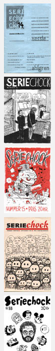 Tjugosjätte september 2004: Tillbaka efter en lång tids tystnad med en senkommen recension av Chris Ware-numret av McSweeney's Seriechock är ett fansin om serier i allmänhet och amatörserier i synnerhet. Fansinet ges ut av Fredrik Jonsson. Pappersversionen kommer i bästa fall ut ungefär en gång/år. På den här sidan hittar du diverse gammalt material uppblandat med nya recensioner och annat. |